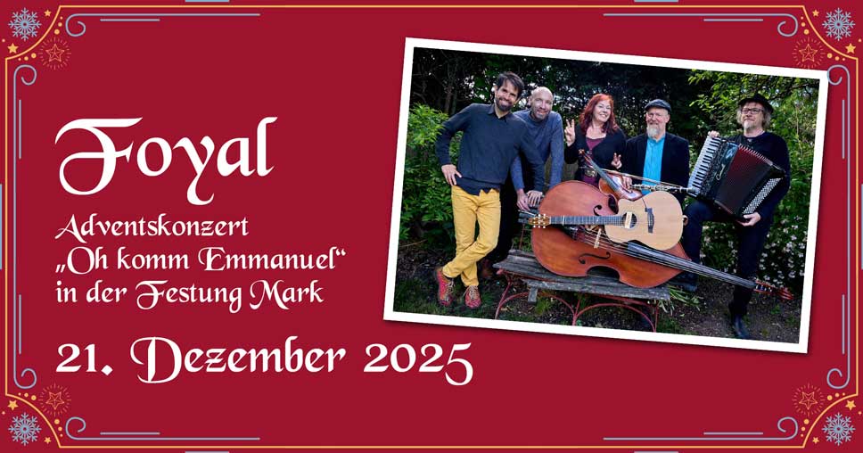 Pünktlich zum Advent gestalten die Musiker der Folk und Weltmusikband „Foyal“ ein vorweihnachtliches Konzert mit alten Weihnachtsliedern neu gewandet – folkig / jazzig und doch vertraut.