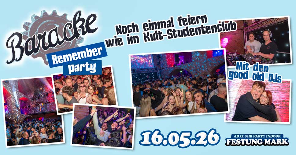Wir lassen die legendäre Baracke nochmal aufleben und schwelgen gemeinsam mit euch in Erinnerungen. Dabei dürfen natürlich auch die good old DJs nicht fehlen.