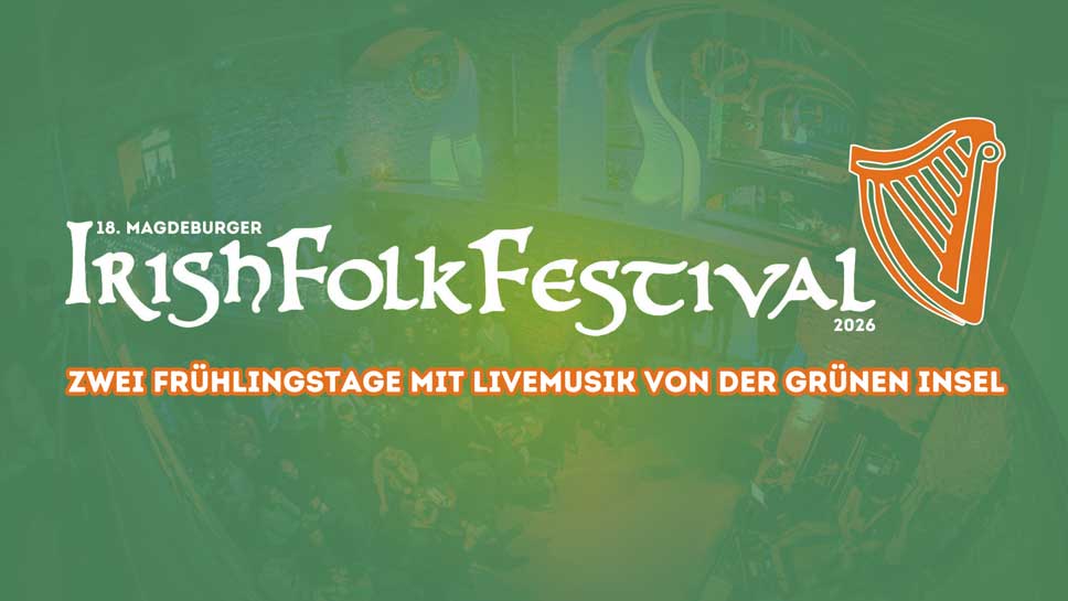 Traditionelle Live-Musik von der grünen Insel, ein beeindruckendes Line-up, beste Unterhaltung & ausgelassene Stimmung, eine große Auswahl an typisch irischen Getränken & internationalen Speisen – das bereits 18. Magdeburger IrishFolkFestival wird am 20. und 21. März 2026 in der FestungMark gefeiert und eröffnet traditionell schon im Frühjahr die Festivalsaison.