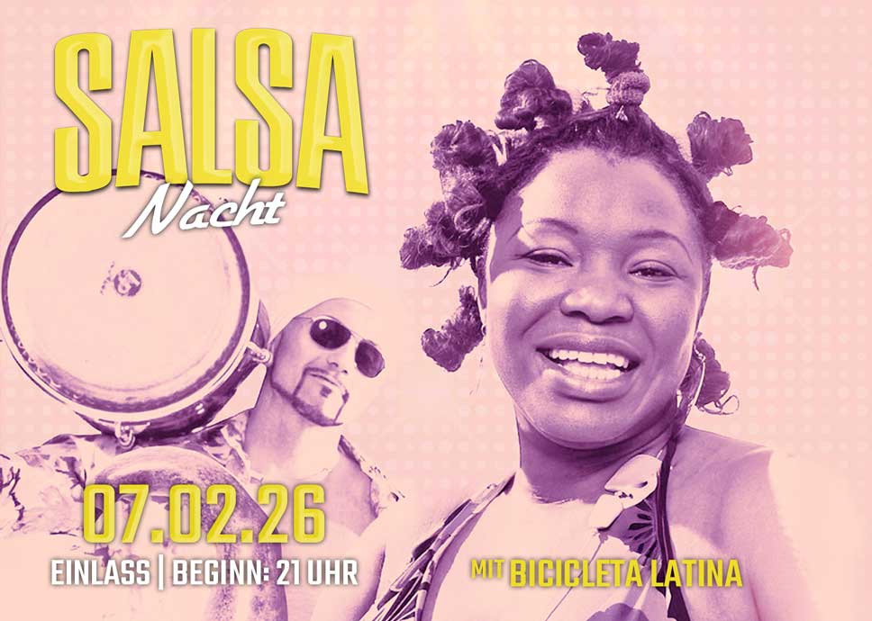 Ladies & Gentlemen, macht euch bereit für eine unvergessliche Salsa Nacht! Am 07. Februar bringen wir Schwung in die Festung Mark – mit mitreißenden Beats, heißen Moves und jeder Menge guter Vibes! Lasst uns mit viel Rhythmus und "Sabor-Latino" ins neue Jahr starten.